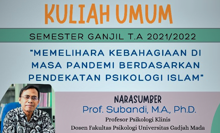 FPsi – Mengawali perkuliahan semester ganjil T.A. 2021 – 2022 Fakultas Psikologi UIN SUSKA Riau mengadakan Kuliah Umum secara online melalui aplikasi Zoom Meeting yang diikuti oleh dosen dan mahasiswa program studi Psikologi S1 dan S2 pada hari Rabu 15 September 2021. Dalam Kuliah Umum ini dihadirkan Prof. Subandi, M.A., Ph.D, Profesor Psikologi Klinis Dosen...Read More