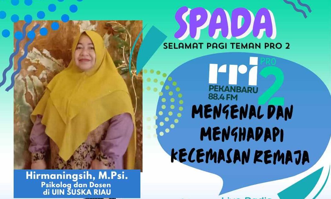 Pekanbaru, 25 Juni 2024– RRI 88.4 FM Pekanbaru menggelar program spesial bertajuk “Selamat Pagi Teman Pro 2” (SPADA) yang kali ini mengangkat tema penting mengenai kecemasan remaja. Acara ini disiarkan secara langsung dari pukul 08.00 hingga 09.00 WIB dan dipandu oleh moderator Fajriyah Hidayati. Acara ini menghadirkan Hirmaningsih, M.Psi, seorang psikolog dan dosen Fakultas Psikologi...Read More