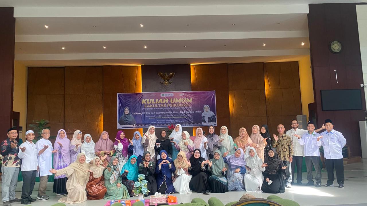 Pekanbaru, 22/10/25. Fakultas Psikologi UIN Suska Riau sukses gelar Kuliah Umum Tahun Anggaran 2025 , kegiatan ini diselenggarakan pada hari Rabu, 22 Oktober 2025 di Gedung Islamic Center ( IC ) UIN Suska Riau. Panitia menghadirkan pembicara tunggal yaitu Prof. Dr. Mirra Noor Milla, S.Sos., M.Si Dosen Fakultas Psikologi Universitas Indonesia ( UI ) Jakarta...Read More