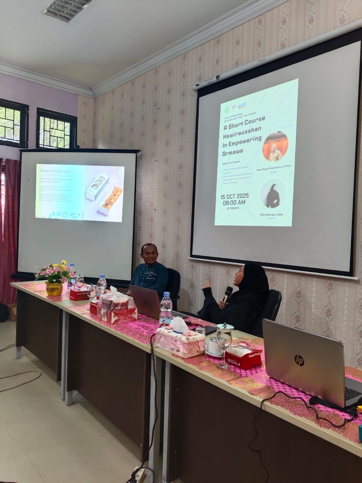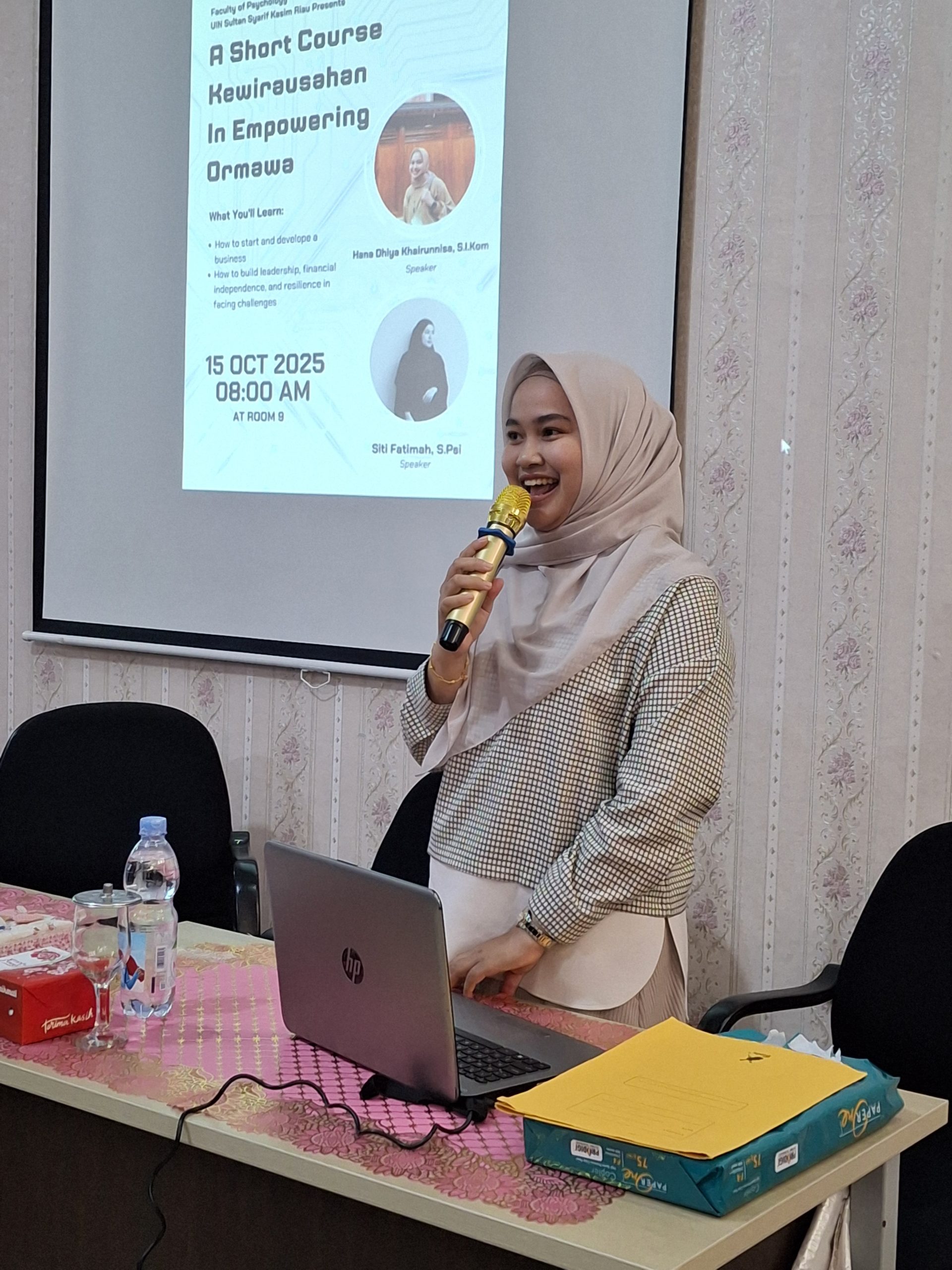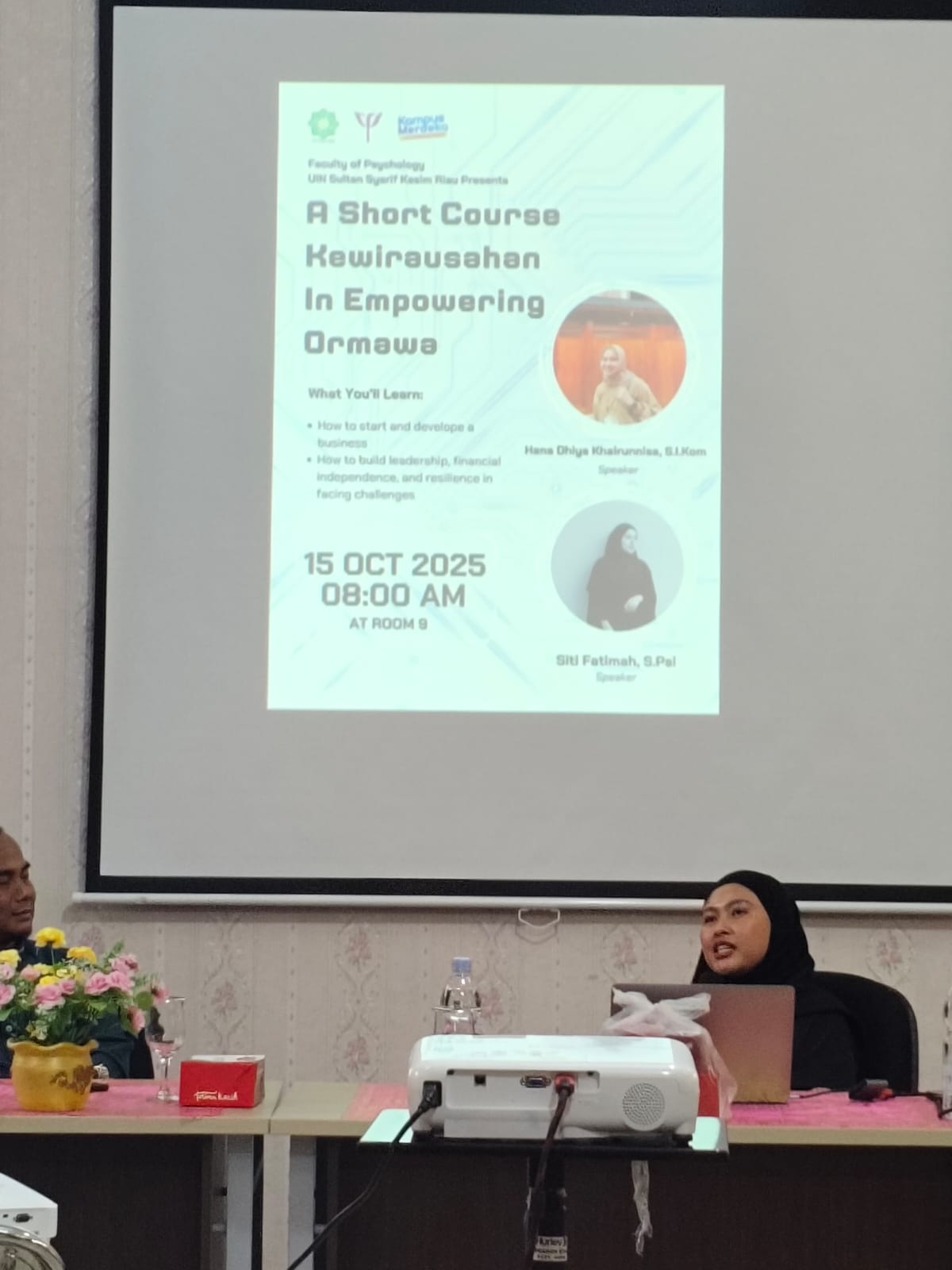Pekanbaru, 15/10/25. Fakultas Psikologi UIN Suska Riau mendorong mahasiswanya untuk menjadi pengusaha muda yang sukses di masa depan, hal ini sudah menjadi upaya dan komitmen Fakultas Psikologi untuk menumbuhkan semangat kewirausahaan di kalangan mahasiswa . upaya ini diwujudkan dengan menggelar seminar yang bertajuk “A Short Course Kewirausahaan In Empowering Ormawa” pada Hari Rabu, 15 Oktober 2025 di Ruangan Aula Fakultas Psikologi.