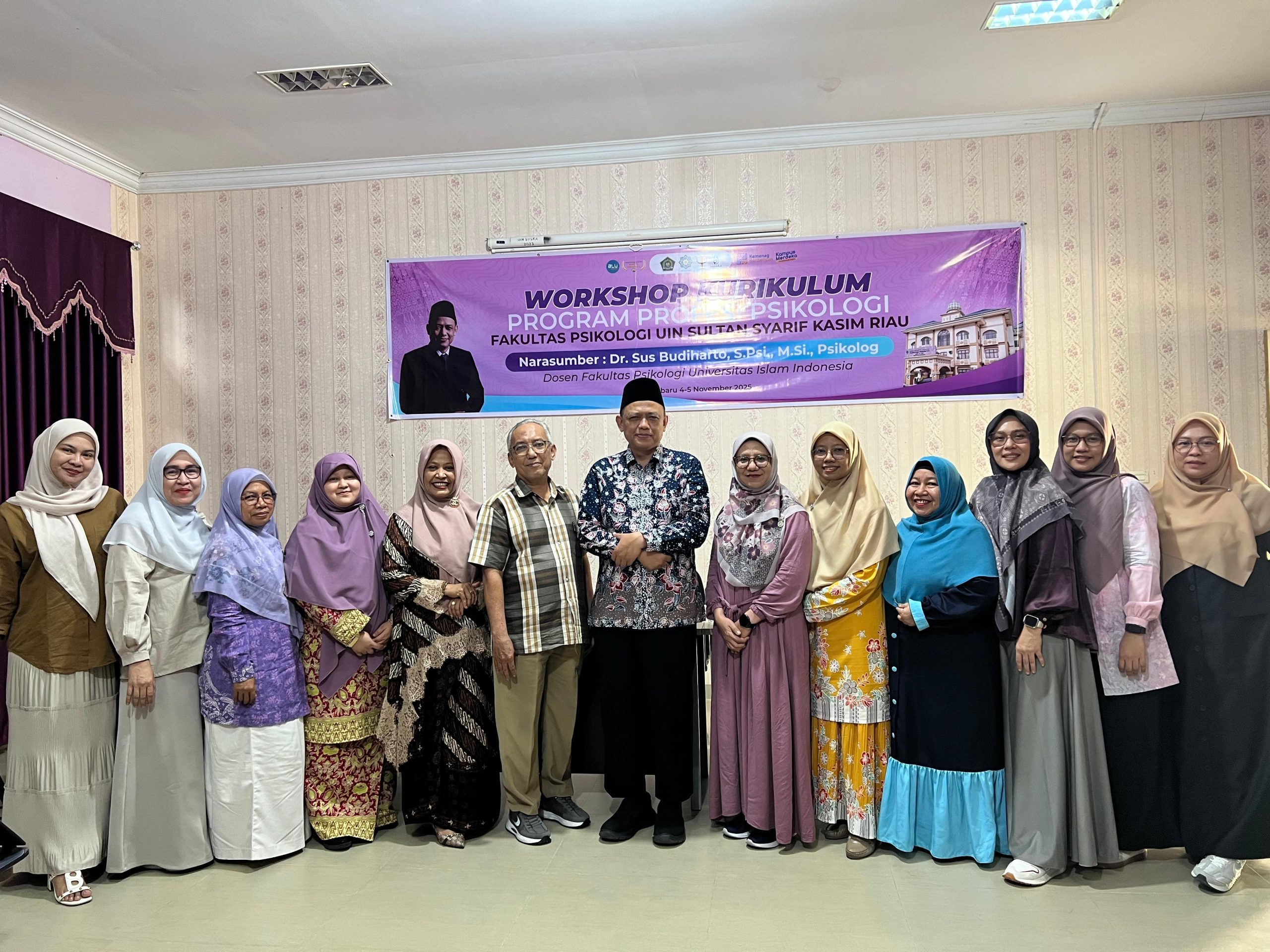 Pekanbaru, 06/11/25. Fakultas Psikologi UIN Suska Riau sukses adakan “Workshop Kurikulum Program Profesi Psikolog” kegiatan ini diadakan di Ruangan Serba Guna Gedung Fakultas Psikologi, Kegiatan berlangsung 2 hari dari Tanggal 4- 5 November 2025. Kegiatan ini menghadirkan narasumber Dr. Sus Budiharto, S.Psi., M.Si., Psikolog, Dosen Fakultas Psikologi Universitas Islam Indonesia ( UII ) Yogyakarta. Peserta workshop ini melibatkan seluruh Dosen Fakultas Psikologi UIN Suska Riau.