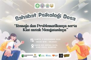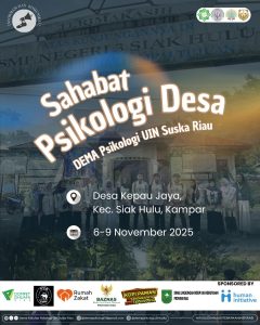 Pekanbaru, 07/11/25. Dewan Eksekutif Mahasiswa (DEMA-F) Psikologi UIN Suska Riau kabinet Binaraksi dengan jargon “Wujudkan Aksi Tebarkan Inspirasi” kembali menunjukkan komitmennya dalam menghadirkan program-program yang relevan dan bermanfaat bagi civitas akademika maupun masyarakat. Pada periode ini, DEMA-F Psikologi berhasil menyelenggarakan berbagai kegiatan yang disesuaikan dengan kebutuhan mahasiswa, hingga akhirnya merancang sebuah program berbasis pengabdian masyarakat yang diberi nama “Sahabat Psikologi Desa”. Kegiatan ini hadir sebagai bentuk nyata kontribusi mahasiswa Psikologi dalam meningkatkan kualitas kehidupan sosial masyarakat.