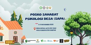 Kegiatan pengabdian masyarakat Sahabat Psikologi Desa ini berlangsung selama empat hari, dimulai pada Kamis, 6 – 9 November 2025. Bertempat di Desa Kepau Jaya, Kec. Siak Hulu, Kab.Kampar