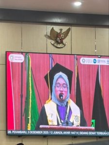Pekanbaru, 08/12/25. Terpilih berpidato dalam acara Wisuda UIN Suska Riau pada Hari Rabu, 3 Desember 2025 di Gedung Pusat Kegiatan Mahasiswa ( PKM ), mewakili wisudawan/wisudawati Periode X UIN Suska Riau, tidak terpikir oleh Ayu Sumbari selama ini, ini merupakan penghargaan, kesempatan dan kebanggaan bagi dirinya, keluarga maupun bagi Fakultas psikologi yang selama ini tempat menimba ilmu pengetahuan,