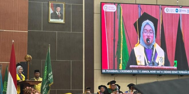 Pekanbaru, 08/12/25. Terpilih berpidato dalam acara Wisuda UIN Suska Riau pada Hari Rabu, 3 Desember 2025 di Gedung Pusat Kegiatan Mahasiswa ( PKM ), mewakili wisudawan/wisudawati Periode X UIN Suska Riau, tidak terpikir oleh Ayu Sumbari selama ini, ini merupakan penghargaan, kesempatan dan kebanggaan bagi dirinya, keluarga maupun bagi Fakultas psikologi yang selama ini tempat menimba ilmu pengetahuan,