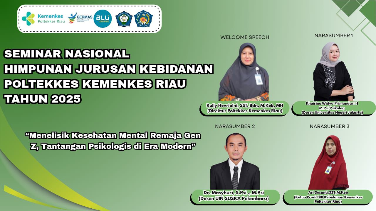 Seminar yang mengangkat tema sentral “Menelisik Kesehatan Mental Remaja Gen Z; Tantangan Psikologis di Era Modern” ini dibuka langsung oleh Direktur Poltekkes Kemenkes Riau, Rully Hevrialni, SST.Bdn., M.Keb., MH, dan dihadiri oleh ratusan peserta dari kalangan akademisi, praktisi kesehatan, serta mahasiswa.
