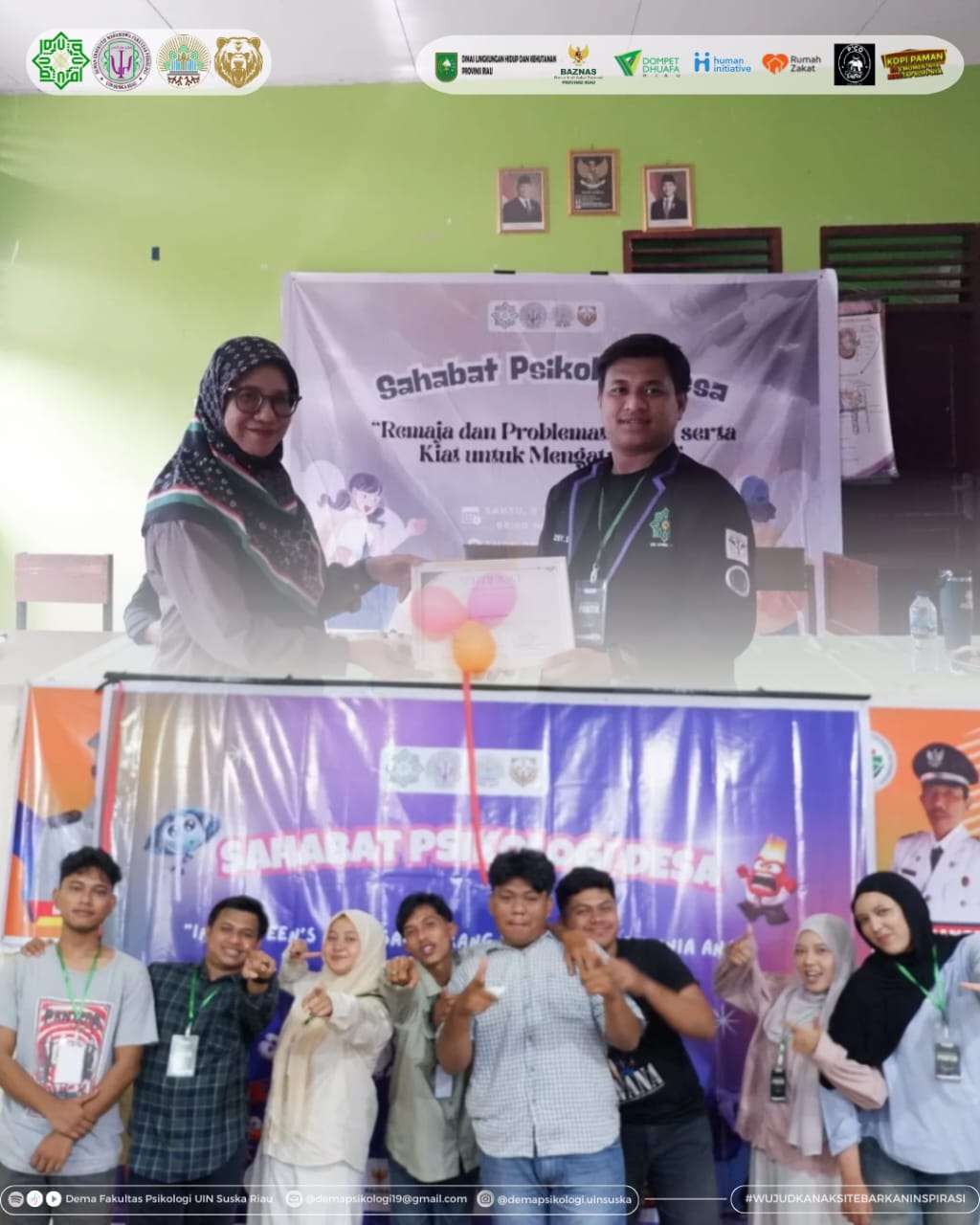 Pekanbaru, 05/12/25. Dewan Eksekutif Mahasiswa (DEMA) Fakultas Psikologi UIN Sultan Syarif Kasim Riau melaksanakan program Sosialisasi Sahabat Psikologi Desa (SAPA) 2025 di desa Kepau Jaya, Siak Hulu, Kampar, Riau sebagai bentuk pengabdian kepada masyarakat yang berorientasi pada pencegahan kenakalan remaja serta penguatan pola asuh positif bagi orang tua di lingkungan pedesaan. Program ini dirancang untuk...Read More