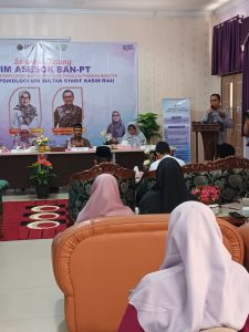 Dalam sambutannya Prof. Dr. Hj. Ulfiah, M.Si., CPCE., MCE sebagai ketua Asesor BAN PT menyebutkan bahwa kunjungan ini adalah untuk menyambung silaturrahmi dengan UIN Sultan Syarif Kasim Riau khususnya Dengan Fakultas psikologi,